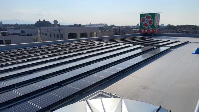 同店の屋上には、太陽光発電設備を設置し、再生可能エネルギーを創出する。年間で約14万kWhの発電を見込んでおり、店舗の使用電力の一部として活用する。