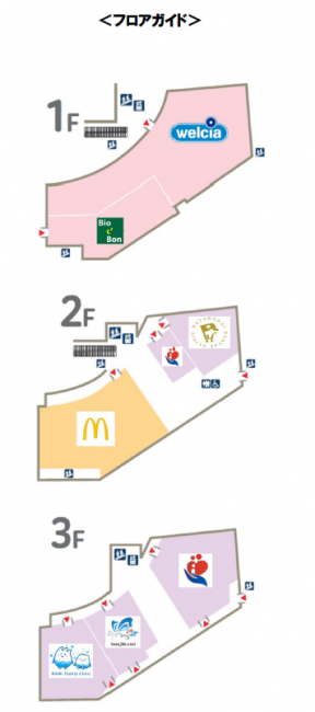 調剤薬局併設型ドラッグストア「ウエルシア薬局」や内科、耳鼻科などの多様なクリニック、イオンタウン初出店となるオーガニックスーパー「ビオセボン」などが出店する。