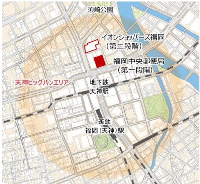 イオン九州news|福岡中央郵便局と「イオンショッパーズ福岡」’30年に建替