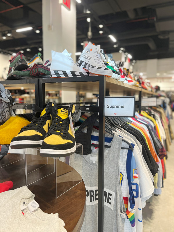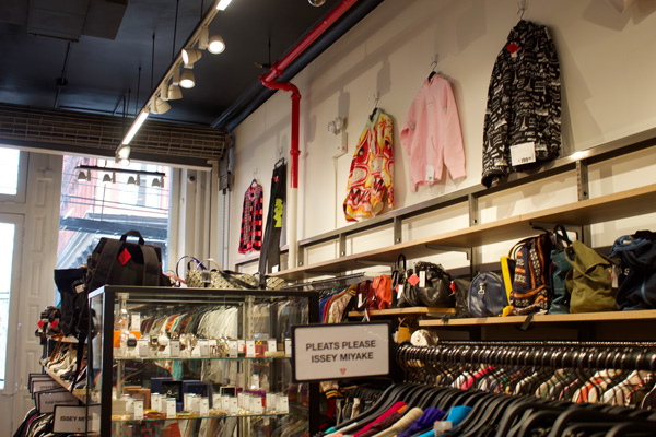 ダンボ店の面積は64坪。メンズ・レディースの衣料品やバッグ・靴・アクセサリーといった服飾品など、合計約1万点のリユース商品を品揃えする。日本のデザイナーズブランドをはじめ、アメリカやヨーロッパのデザイナーズブランド、国際的に人気のあるラグジュアリーブランドなど、さまざまなブランドの商品を取り扱う。