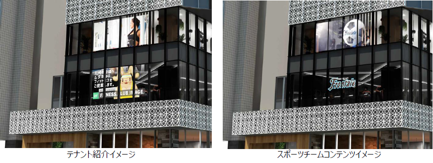 「MEFULL 川崎」の2階と3階部分の室内には、透過型LEDビジョンを設置し、施設・テナント情報を前面通行者に発信する。また、川崎市に本拠地を置く「川崎フロンターレ」「川崎ブレイブサンダース」と連携して、試合結果やチーム紹介コンテンツを放映し、地域住民に愛される施設を目指す。