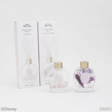 THREEPPY 博多バスターミナル店では、リニューアルオープンにあわせ、ディズニープリンセスのラプンツェルをデザインしたディフューザーを全国のTHREEPPY に先駆けて発売する。香りはフリージア(ストーン入り)とオジギソウ(フラワー入り)の2種。各100mlで500円。