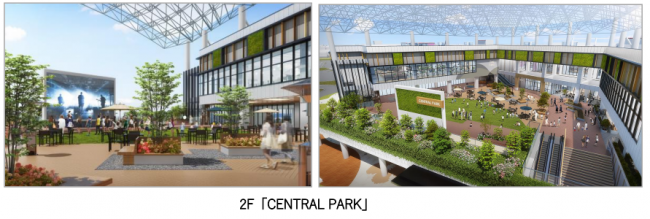 2階には大屋根を設け、悪天候でもゆったり過ごせる芝生エリアやテラス席を備えた「CENTRAL PARK」を設置する。