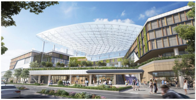 商業施設面では発電容量1300kWの「ソーラーカーポート」を設置。また、施設内で発生する食品生ごみを利用して「バイオガス」発電やAIカメラを活用した空調制御により、50%以上の一次消費エネルギー消費量を削減する建造物であることを証明する「ZEB Ready」を国内で初の認証取得予定(2023年3月)となっている。