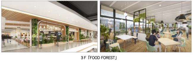 3階にはフードコート「FOOD FOREST」が配置される。900席を擁し、和洋食、麺、ファストフードなど12店舗が出店する。