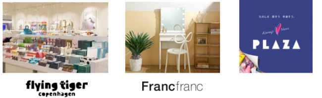 ライフスタイル雑貨では、環境負荷の少ない素材やサステナブルな商品の取り扱いも多い人気の北欧ブランド「Flying Tiger Copenhagen」が出店。また、インテリア専門店「Franc Franc」が出店する。