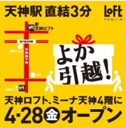 (株)ロフト(東京都渋谷区、安藤公基社長)は2月15日(水)、3月12日(日)に営業を終了する福岡市中央区天神の「天神ロフト」について、4月28日(金)に「ミーナ天神 4階」に移転オープンすると発表した。