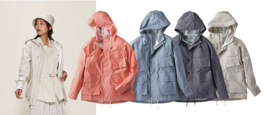 その注目商品の一つは、普段着にも使える「FLAME-TECHマウンテンザックレインパーカー」。FLAME-TECH®加工で焚火の火の粉でも穴あきしにくい。素材は綿100%だが耐水圧1万mm、透湿度2万g/㎡/24hと高機能だ。価格は4900円(税込み、以下同じ)。