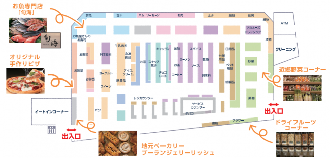 青果コーナーでは、約20種類から選べるドライフルーツとナッツの詰め合わせを販売する。カットフルーツは新アイテムを追加する。鮮魚コーナーでは、水産専門店「旬海」を導入する。旬海の店長が奈良市場から仕入れをし、おすすめの食べ方を提案する。精肉コーナーでは、鮮度・品質にこだわった商品に加えて、その素材を使った惣菜や弁当を販売する。