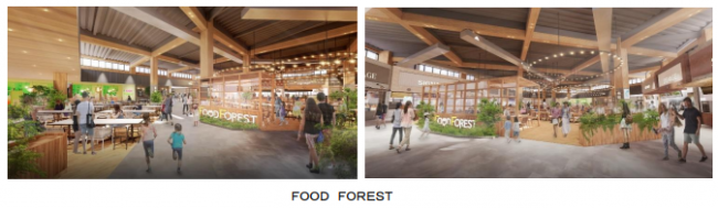 2階には、新業態3店舗を含む10店舗の飲食専門店と約700席を備えたフードコート「FOOD FOREST」を展開する。地元・鵠沼のフレンチシェフが考案する和スイーツ専門店「KUGENUMA SHIMIZU」から、新業態「KUGENUMA SHIMIZU CAFE」が全国初出店する。九州発の人気ハンバーグステーキ専門店「極味や」、ミシュランガイド、ビブグルマン3年連続受賞のうどん店「香川一福」、「小田原海鮮とと丸食堂」や鳥料理の「親子丼と唐揚げTAMAGOYA」が出店する。