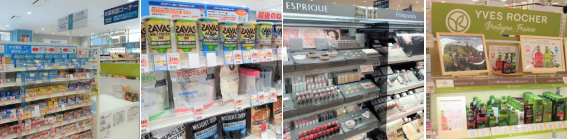 医薬品売場では登録販売者、化粧品売場ではビューティアドバイザーが、お客の悩みや要望を聞きながら、美と健康をサポートする。また、日用雑貨売場では、ヘアケア、オーラルケアをはじめ、ベビー用品、介護用品、ペット用品も品揃えする。