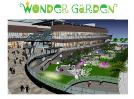 「GOURMET TERRACE」に隣接するWonder Gardenでは、より緑豊かで開放的な空間を演出するため、樹木を追加し、ベンチやステージなどを木目調の落ち着いたデザインへ刷新する。さらに、夜間には視覚・聴覚を楽しむデジタル空間を創出し、桜をはじめさまざまな花びらが美しく舞う映像を投影する。