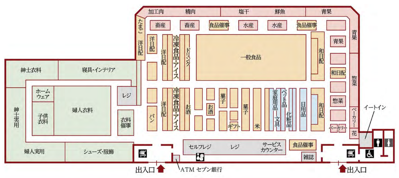 大型店の春日井店では商品だけでなく、日常生活に必要な衣料品や住居用品までを扱う。