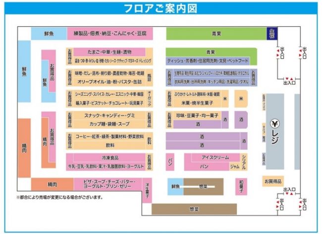 加工食品売場では、話題性の高いグミカテゴリーをコーナー展開する。韓国食材、エスニック、アジア地域の輸入即席麺の品揃えを拡充する。酒売場では、「GI ワイン」や果実の風味が楽しめる「フルーツの酒」を展開する。