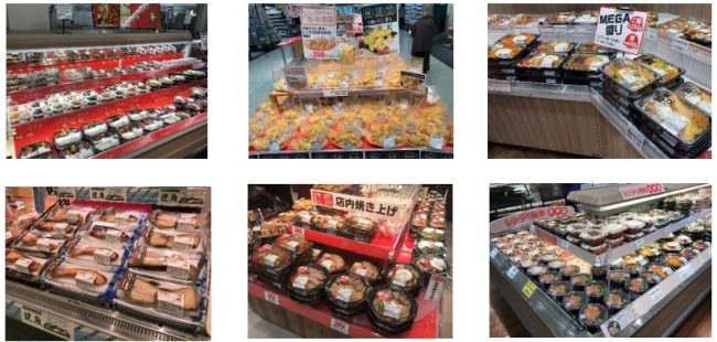 惣菜売場では、魚惣菜・煮物商品をコーナー展開する。レンジで温めるだけの「チルド米飯」、ボリューム商品「シェアして食べるお弁当(メガ盛り)」、本格中華「香味楼」を展開する。