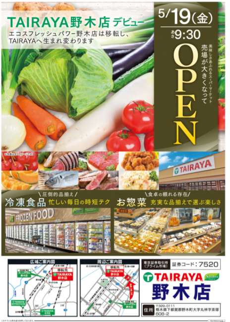 たいらやnews|5/19「TAIRAYA野木店」オープン/旧店からの移転増床