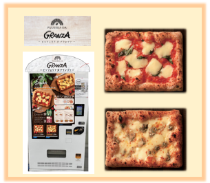 洗足駅前にある人気店のピザが楽しめる自動販売機。「ナポリピッツァ職人コンテスト 2012」クラシカ部門で1位の栄冠に輝いたピザ職人が監修した。全粒粉を加え、低温で48時間発酵した熟成生地は、風味豊かな味わいがある。マルゲリータとクアトロフォルマッジの2種類を揃える。