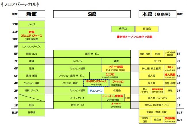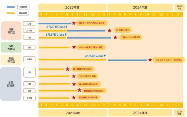 S館5階には、2023年9月29日(金)に「ユニクロ」が柏市最大級の売場面積で出店する予定で、大型店ならではの品揃えを提供する。S館6階のベビー・キッズフロアも2023年9月にリニューアルオープンする。ベビーカーや育児用品、上質なベビーギフトなど、洋服や雑貨の品揃えを強化する。また、コンサルティングサロンを新設し、子育てに関する相談会を定期開催する。