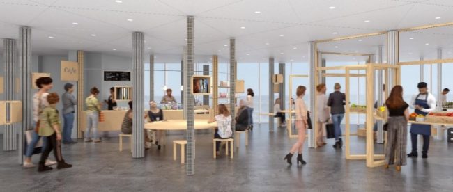 新館では、2024年秋、10-11階に「コミュニティスペース」を新設する。駅直結の立地を活かしたリアルな場所として、ヒト・モノ・コトと出会ったり、つながることができる場と企画を提案する。フロア全体には、柱を散りばめて配置する。統一感のある空間でありながら、可変性が高く、さまざまなアクティビティのきっかけになる仕組みを導入する。