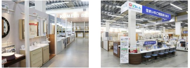 洗面化粧台やシステムキッチンなどの住宅設備機器を展示し、専門スタッフが増改築やリフォームの相談に対応する。また、店内すべての住まいに関する商品の取付施工や交換工事を受け付ける。