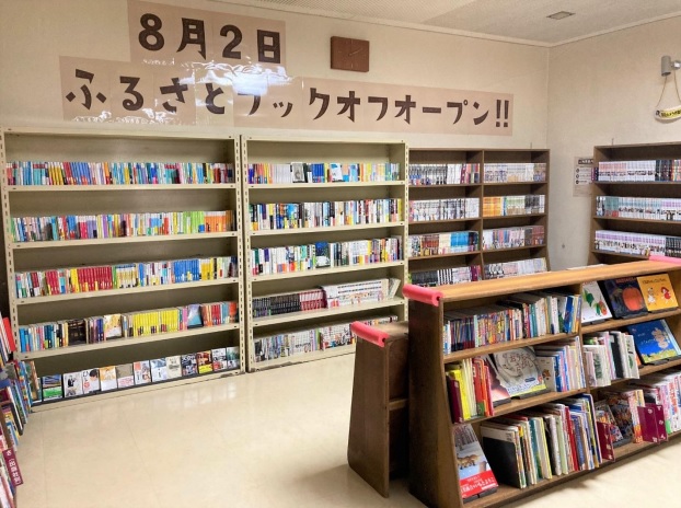 「ふるさとブックオフ」1号店の「ふるさとブックオフ西和賀町湯本屋内温泉プール店」は、廃校の本棚を売場に活用し、ロングセラーの書籍、コミック、文庫本や児童書、絵本、洋書など、常時約3000点を取り揃える。価格は 100~300円(税込)で販売する。
