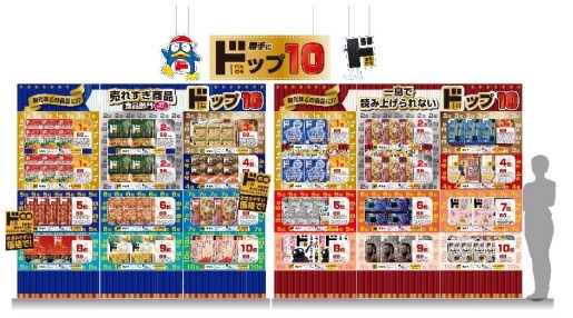 「ドップ 10」では、「一息で読み上げられないドップ 10」や「売れすぎ商品ドップ 10」など、さまざまな切り口のランキングを月替わりで紹介する。