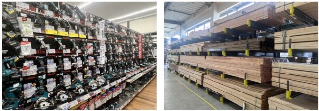同店は、コーナン PROとして八尾市内2店舗目となる。顧客からの要望を聞いて品揃えを充実させ、工具、衣料・電材の配列を工夫し、建築資材・電動工具・金物など約4万アイテムの商品を取り揃える。