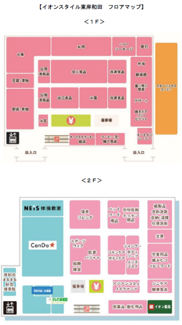 核店舗の「イオンスタイル東岸和田」は2層の売場で構成される。1階は生鮮・デリカを充実させた「食品」、2階は日常使いに対応した住居、台所、肌着、衛生用品、コスメなどの「日用品」売場となっている。