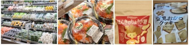 従来のドラッグストアで取り揃えている一般食品、酒、冷凍食品に加え、スーパーマーケット同様に、野菜や果物、肉、魚、惣菜まで品揃えする。また、地元の商品や健康に配慮した商品も取り揃え、食の面でもお客の健康をサポートする。