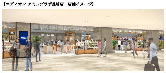 長崎県長崎市にオープンする「エディオン アミュプラザ長崎店」は、長崎市の JR 長崎駅隣接の複合商業施設「アミュプラザ長崎 新館」の 4 階に出店する。長崎県内 5 店舗目の直営店となる。