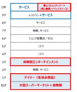 リニューアルのコンセプトは「“立川暮らし”の場」。デイリー性の強い専門店を誘致することで生活必需品ニーズに応えるとともに、体験型施設やイベント、趣味嗜好の集いの場など、さまざまな新規コンテンツを導入し、地域住民の“暮らしの場”となるショッピングセンターを目指す。