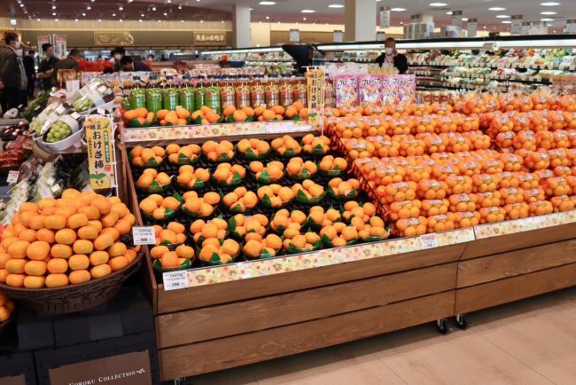 店内に入るとすぐの青果売場では、新潟県内や全国各地からバイヤーが厳選した旬の果物が並ぶ。また地場野菜コーナーでは契約農家の採れたて新鮮野菜をはじめ、新潟県内の野菜を揃える。