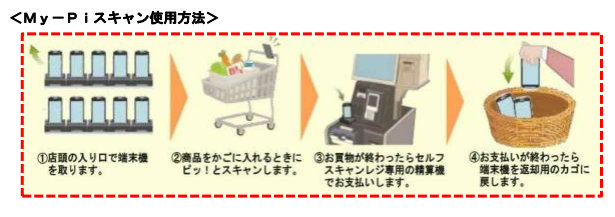 サービス面ではセルフスキャンシステム「My-Pi(マイピ)スキャン」を11月2日(木)から導入する。顧客の利便性向上と店舗業務の効率化を図り、レジ混雑の緩和に努める。