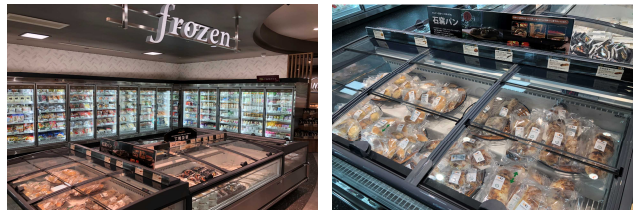 冷凍食品は「フローズンコーナー」として、新たにコーナー化された。生鮮品から即食品まで幅広く品揃えする。フローズン石窯パンや冷凍ピッツァ、生ハムや刺身で食べられる魚なども冷凍で展開する。
