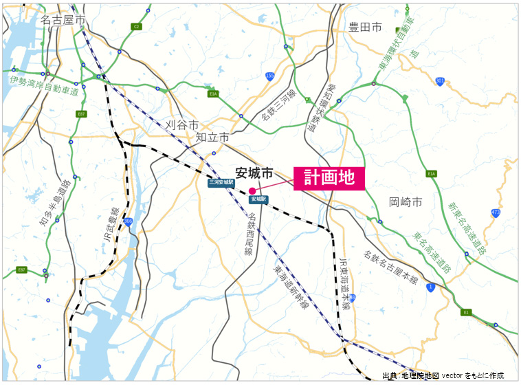ららぽーと安城はJR東海道線「安城駅」あるいは名古屋鉄道西尾線「北安城駅」から徒歩圏内、また国道1号、23号、419号といった幹線道路からのアクセスも良好で、交通利便性の高い立地だ。