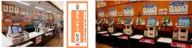 チェックアウトでは、対面形式のレジ2台、キャッシュレス決済専用のセルフレジを5台導入する。対面レジには「おもいやりレジ」を掲げる。お金の出し入れに時間がかかる人や子ども連れの家族などが、焦らずゆっくり会計ができるレジのことである。また会計と商品の袋詰めを一連の流れで行うカウンターレジを採用する。