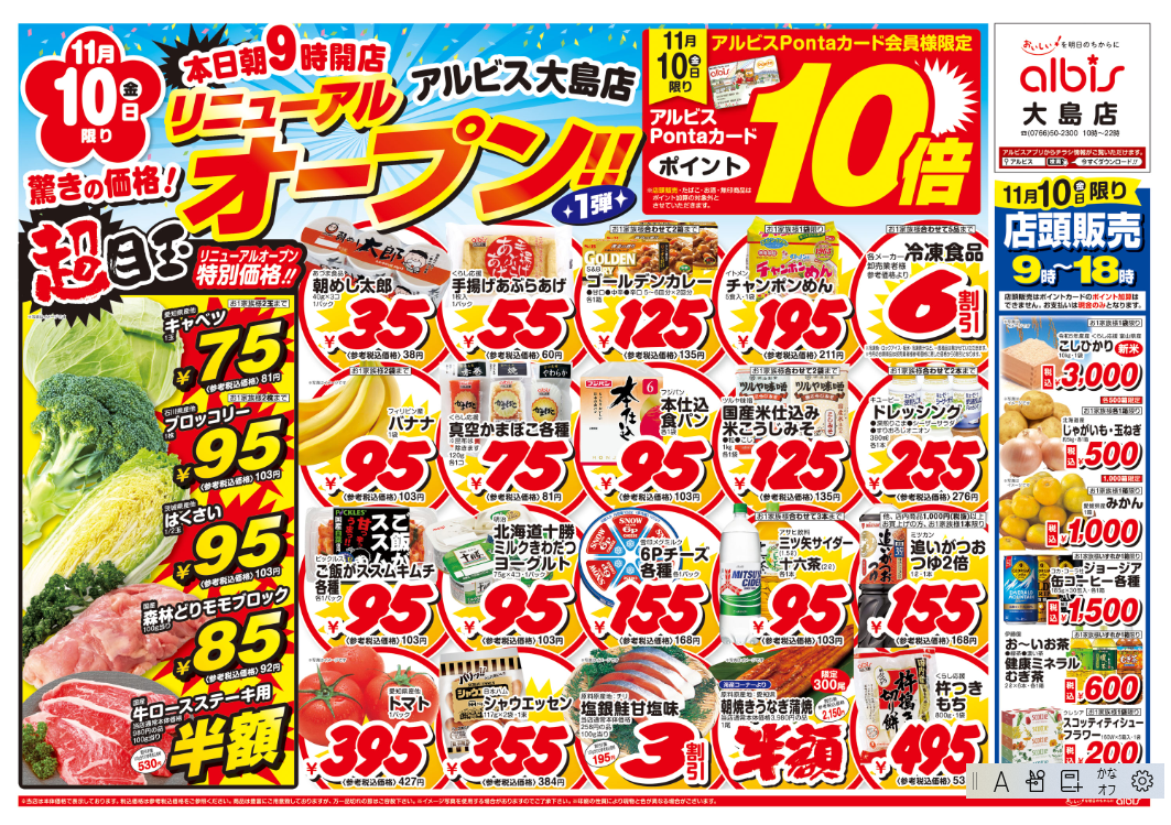 アルビスnews|射水市・919坪のアルビス大島店11/10改装オープン
