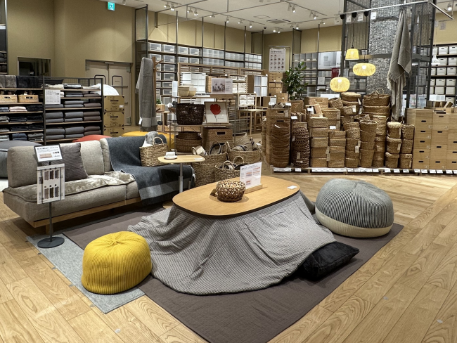 また売場では実際の暮らしをイメージしやすいよう、生活のシーンが見えるような展示を行う。生活雑貨売場では季節に合わせた家具や寝具などのファブリックコーディネートを中心に陳列する。