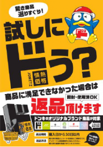 情熱価格を含む、ドンキ自慢のオリジナルブランド商品を選りすぐって取り扱う「ドミセ渋谷道玄坂通店」では、購入日から30日以内であれば、オリジナルブランドの全品を返品することができる。商品の開封や、使用・不使用は問わない。