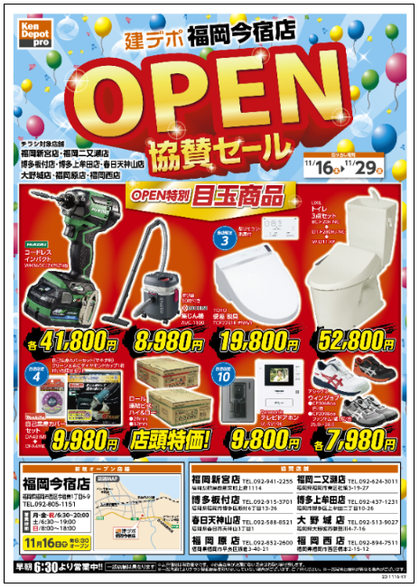コーナン商事news|会員制総合建材卸売店「建デポ福岡今宿店」11/16開設