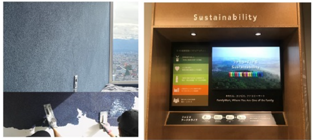 店内にはSustainabilityコーナーを常設し、サイネージによるファミリーマートの活動紹介やファミマフードドライブの受け付けボックスを設置し、食品寄付を募る。