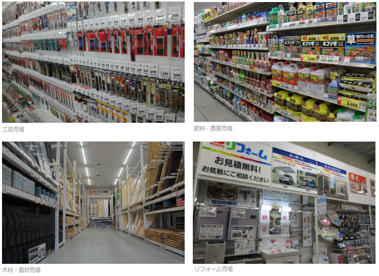 主な取扱い品種/工具・金物、建築資材、農業資材、園芸用品、植物、家庭日用品、ペット用品、インテリア用品、灯油 他