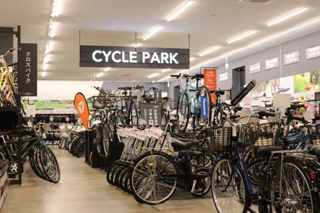 また岡山市は「自転車先進都市おかやま」を目指し、身近で便利な交通手段として自転車の利用を促進していることから、同店のサイクルコーナーでは自転車用の安全グッズを多数取り揃え、さらに専門知識を有したスタッフが顧客のサイクルライフをサポートする。