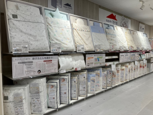 ふとんのサンプルも数多く展示されているので、大きさや全体のデザインを確認しやすい。