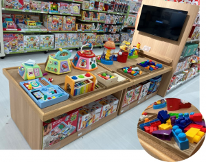 おもちゃのサンプルも多数用意しているので、来店した子どもも実際に手に取って遊べる。