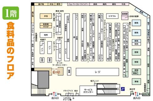 1階「食料品のフロア」では、改装によって商品棚をリニューアルおよび増設し、肉・惣菜・冷凍食品を中心に商品の品ぞろえを拡充した。畜産では、オリジナルブランド豚「鹿児島県産薩州姫豚」やライフオリジナルの「個食鍋」を各種品揃えする。