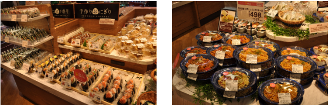 惣菜売場の手づくりおにぎりには国産コシヒカリ、有明産海苔、淡路島藻塩を使用する。またボロネーゼやペペロンチーノなどのパスタを店内調理で提供する。