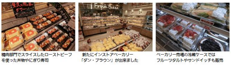 総菜売場では、生鮮売場で販売する新鮮な食材を使ったレンジアップ商品、寿司や弁当等を販売する。その奥には、インストアベーカリー「ダン・ブラウン」を導入し、各種パン、専用窯で焼いたピッツアや店内手作りのサンドイッチなどを販売する。