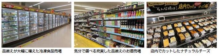 酒売場では、ビールや缶チューハイ、ワインの売場を広げると共に、若い方に支持の高いフルーツ系の酒や低アルコール・ノンアルコール等の商品の品揃えを増やす。チーズ売場では、おつまみに最適なチェダーやブリー等のナチュラルチーズを、店内でカットして販売する。