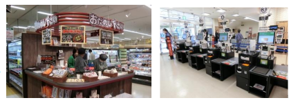 その他、「おためし下さい」コーナーでは、気になる商品を試食できるほか、専任スタッフが商品を紹介する。チェックアウトにはレジ係がいる「お支払いセルフレジ」と、「セルフレジ」を19台導入しているあ。